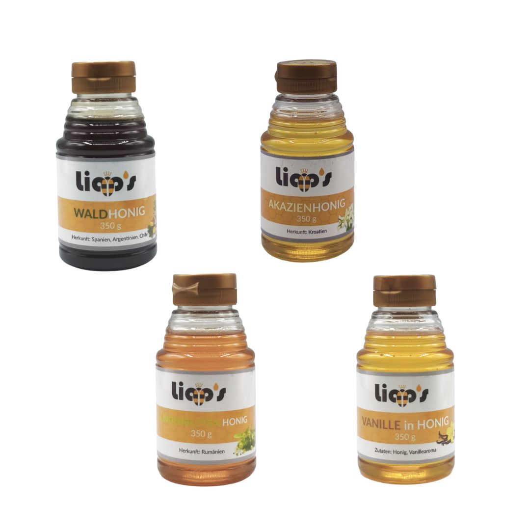 Honig & Brotaufstrich Sortiment – 4 × 350g Squeezeflaschen